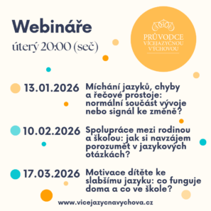 Pokud chcete najít více inspirace, probrat vícejazyčnou výchovu s dalšími odborníky a rodiči nebo se na cokoliv zeptat či přinést nové podněty, sledujte nás na sociálních sítích.